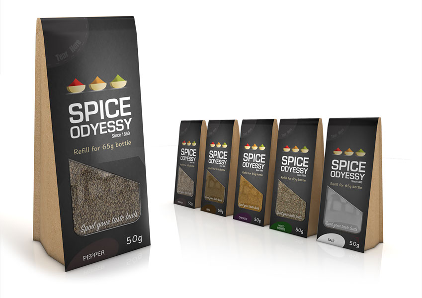 The Key visual is based on the Generic look and feel of the Spice odyssey brand. Using different spices to develop the logo helping illustrate what the brand is all about, Quality and dedication. Visual pack shots to increase the product visibility and help promote brand awareness in store.